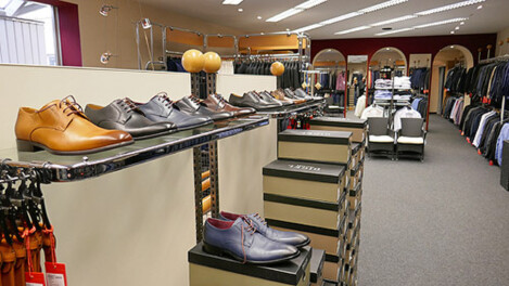 Unser Hochzeitsstudio im ersten Stock bietet über 800 Anzüge. Keine Terminvereinbarung nötig.